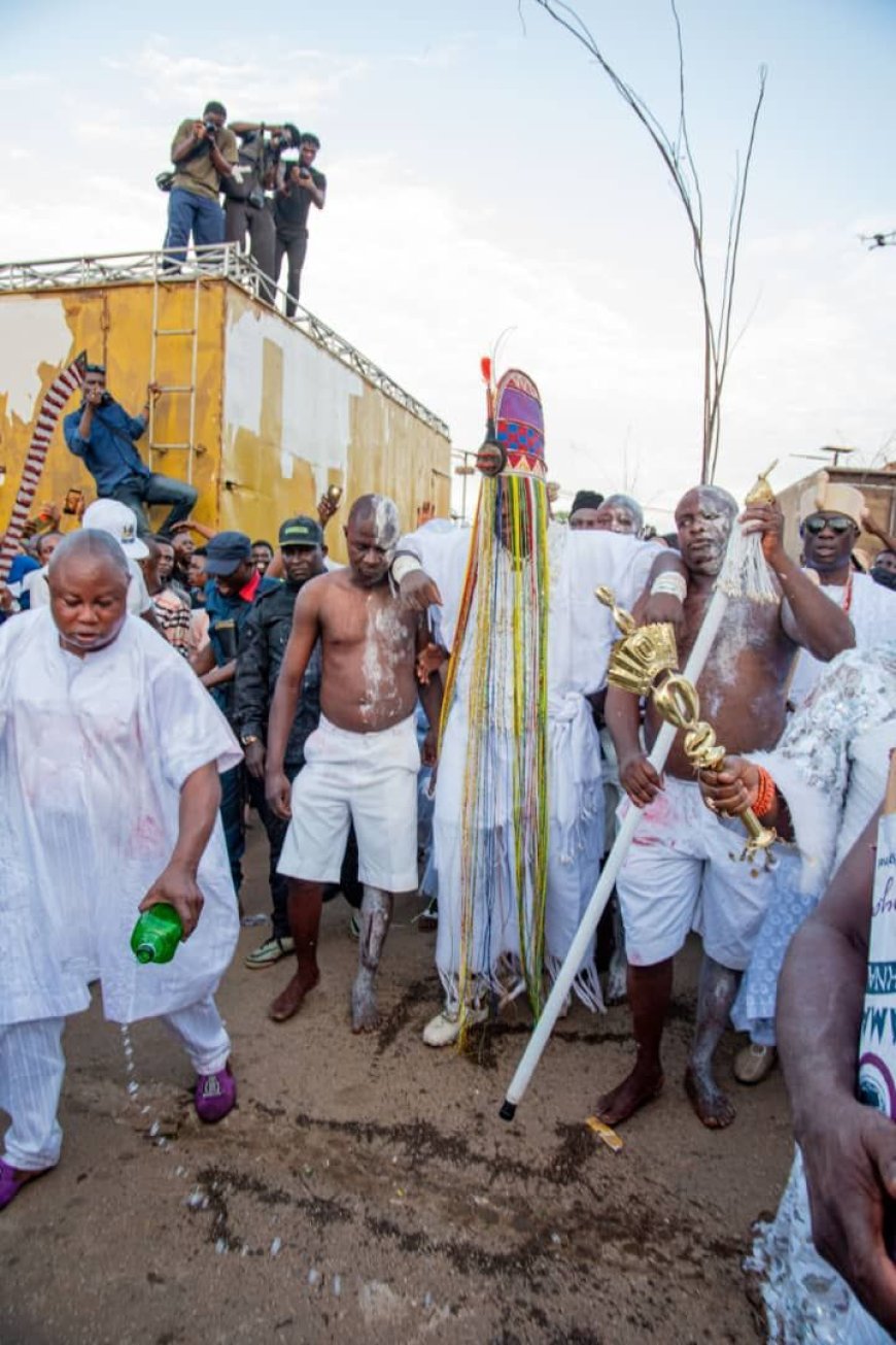 The week was paced like a good procession. Thursday opened with traditional games and a colloquium, early gatherings that drew elders, students and visitors into a rhythm of learning as well as spectacle. Friday’s rites included Iwode Ife, a community cleansing that threads through the streets, and that evening the Ọọ̀ni prayed for Nigeria’s peace and unity as crowds swayed under floodlights. Saturday formed the fulcrum. Ojo Okemogun carried the crown into the open air, chiefs with chalk-marked swords took their stations, and drums answered one another in layered cadences. Only the Ọọ̀ni danced to the Osirigi drum, for there are sounds reserved to rank, just as there are paths reserved to office.